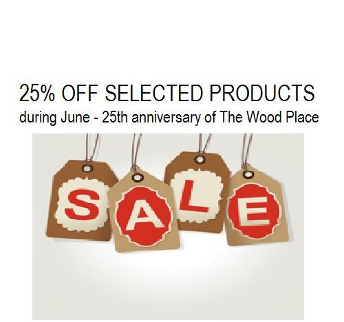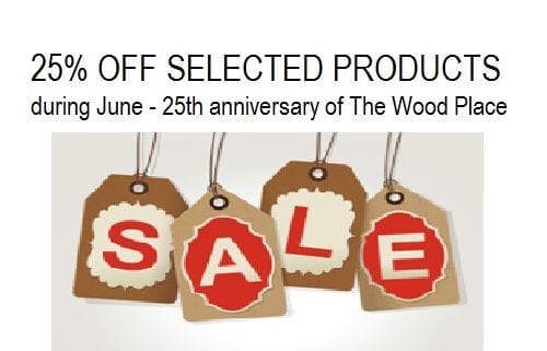 25% DISCOUNT SALE – as part of our celebrations this summer for 25 years of The Wood Place – incorporating Patrick Baxter Furniture, Lanarkshire Hardwoods and Dovetails Woodworking Tuition – we are offering for the remaining 25 days of June a 25% reduction on 25 selected products – find them all on the SPECIAL OFFERS page.