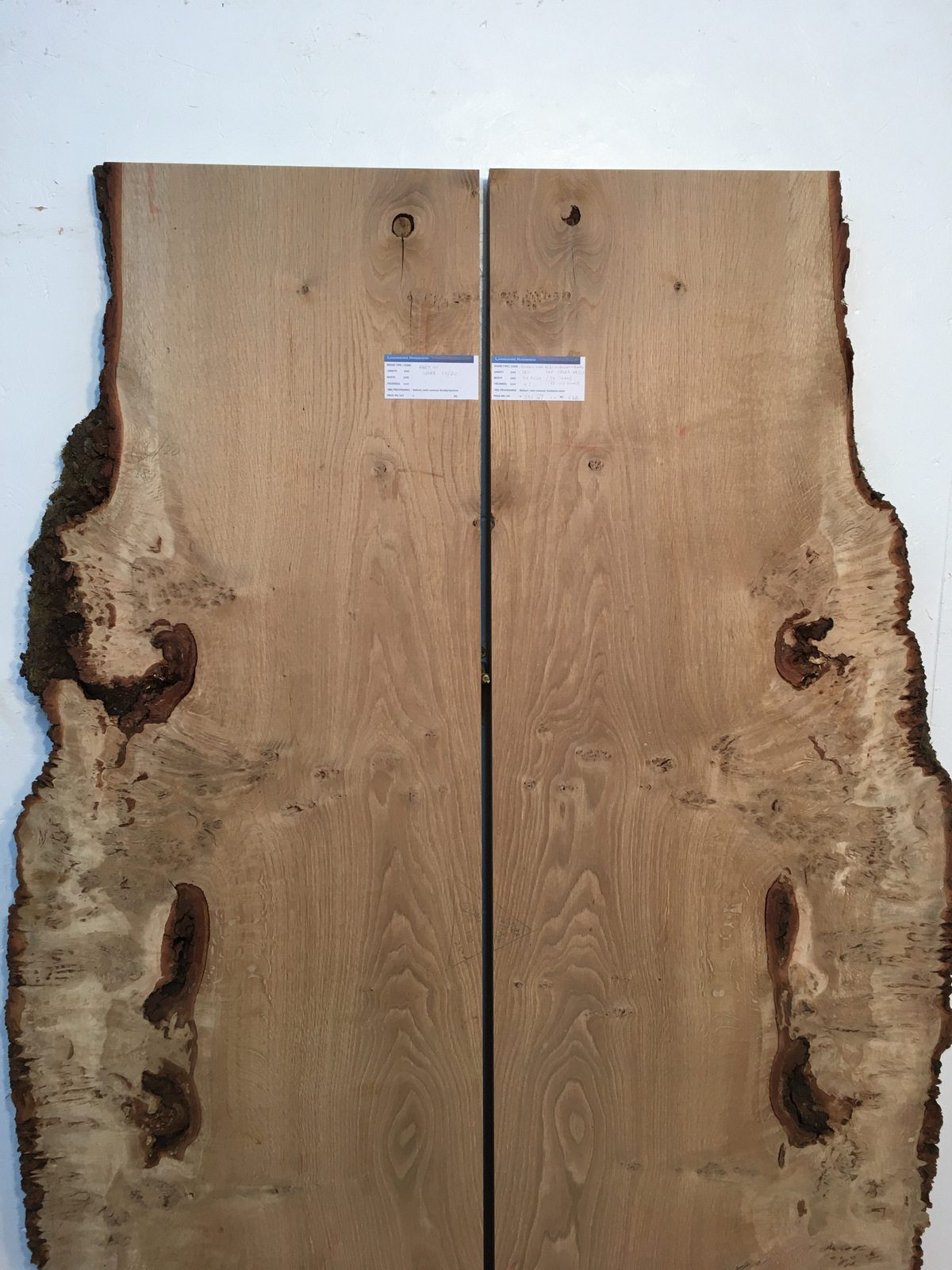 BURRY OAK Bookmatched Set 4.2cm thick – tree number 1008A- Natural Waney Live Edge Slab Board Kiln Dried Planed Seasoned Hardwood Wildwood Table Top