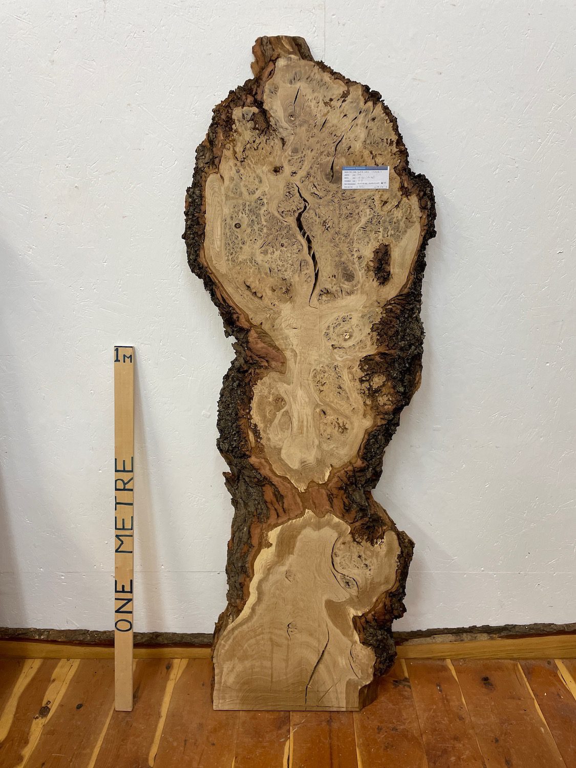 - Widths of live / waney edge boards are taken out to the extreme edge of the bark or wane portion, viewing the main picture of the board as a silhouette – think of it as 2 dimension only, ignoring the wane and whether the measurement is across the front or reverse face of the board. The measurement will thus be across whichever is the greater – usually the reverse face. If you want a separate measurement of the flat machined area only at a given point, or the dimension of a parallel cut board that can be cut out of a waney one, just ask and we will go and measure and reply quickly.