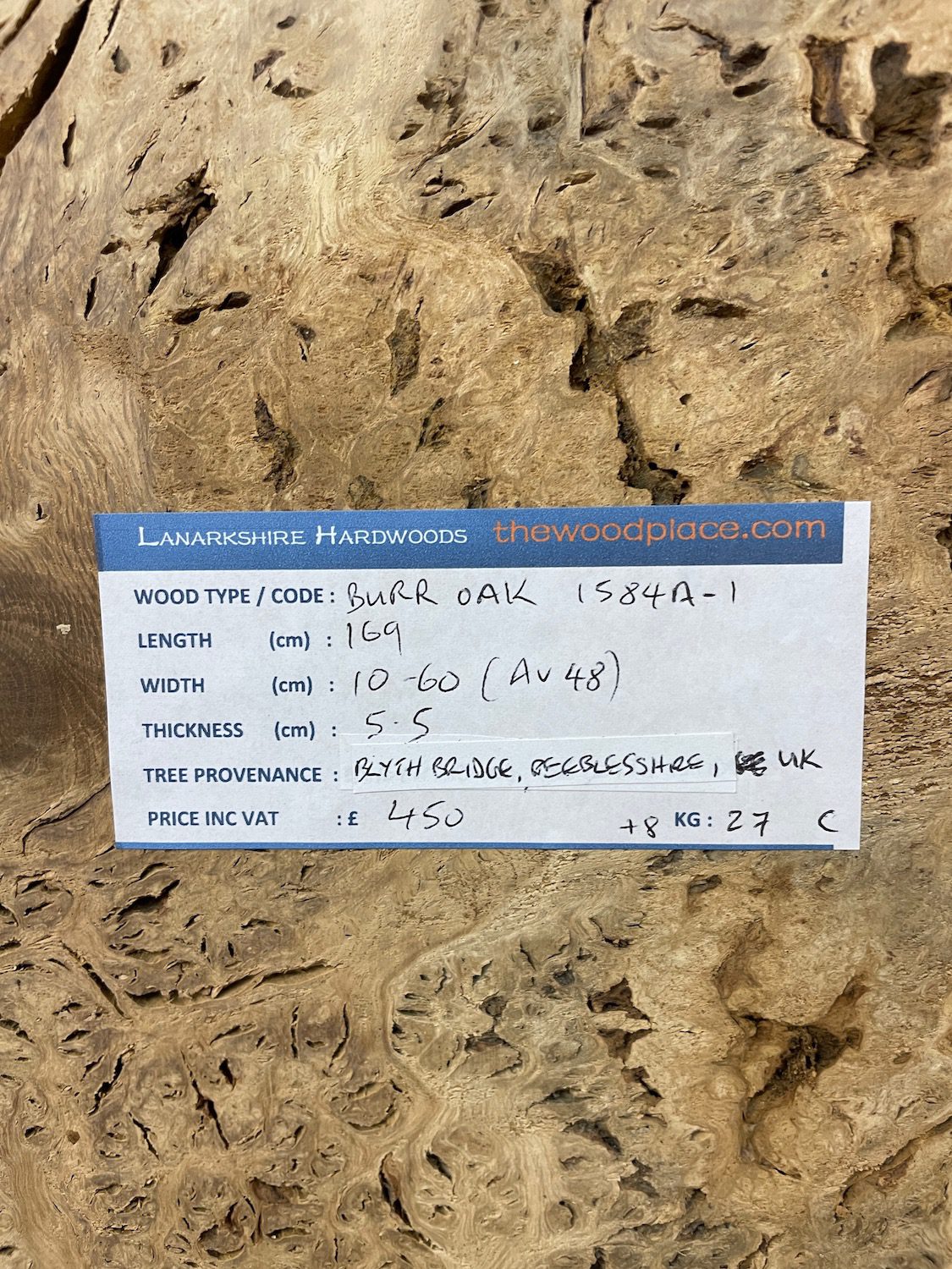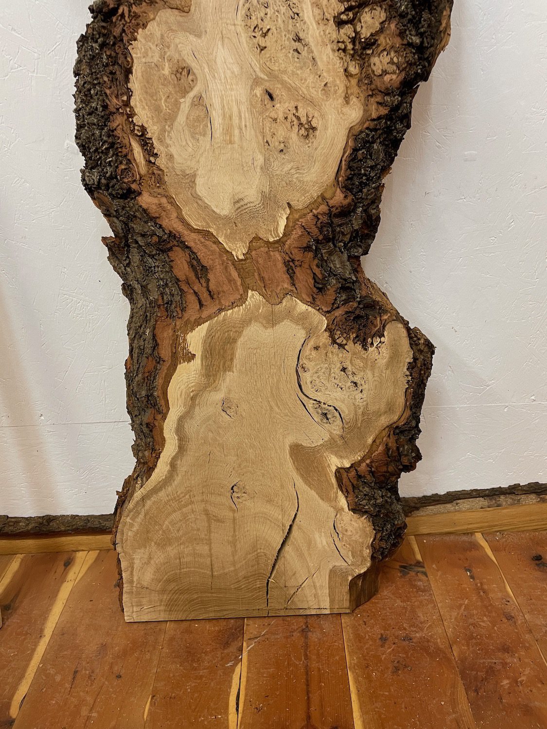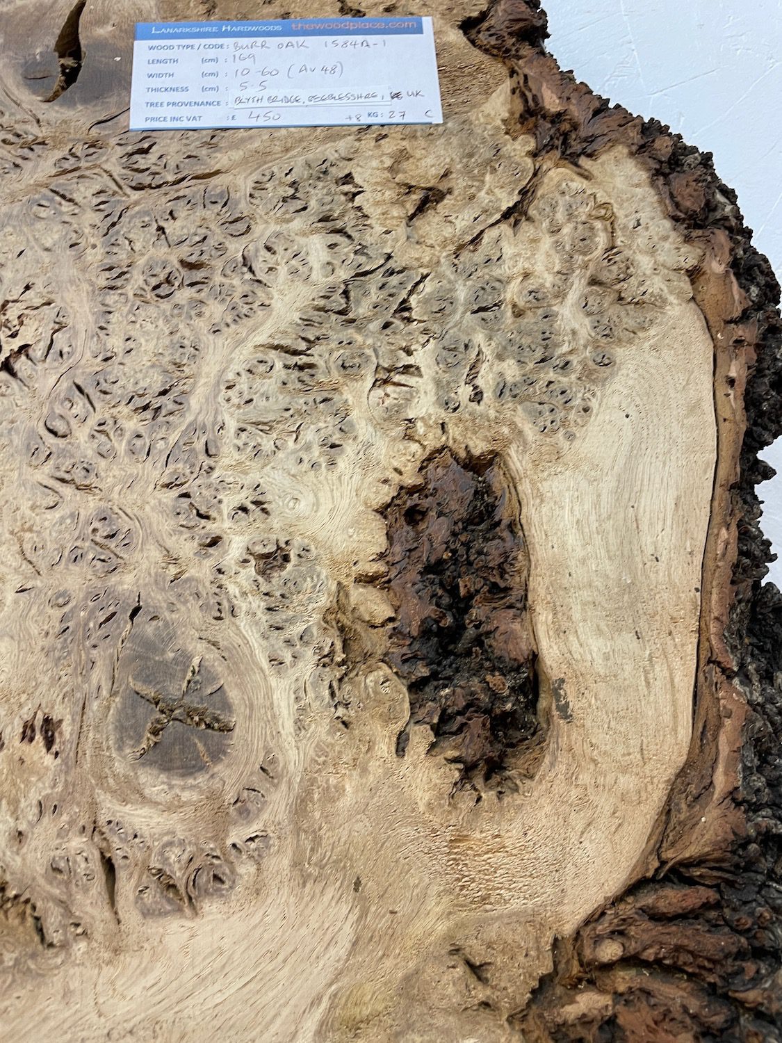 BURRY OAK Natural Waney Edge Slab Planed Finish Hardwood Board 1584A-1 Thickness 5.5cm Kiln Dried Seasoned Live Edge Decorative Wildwood Board