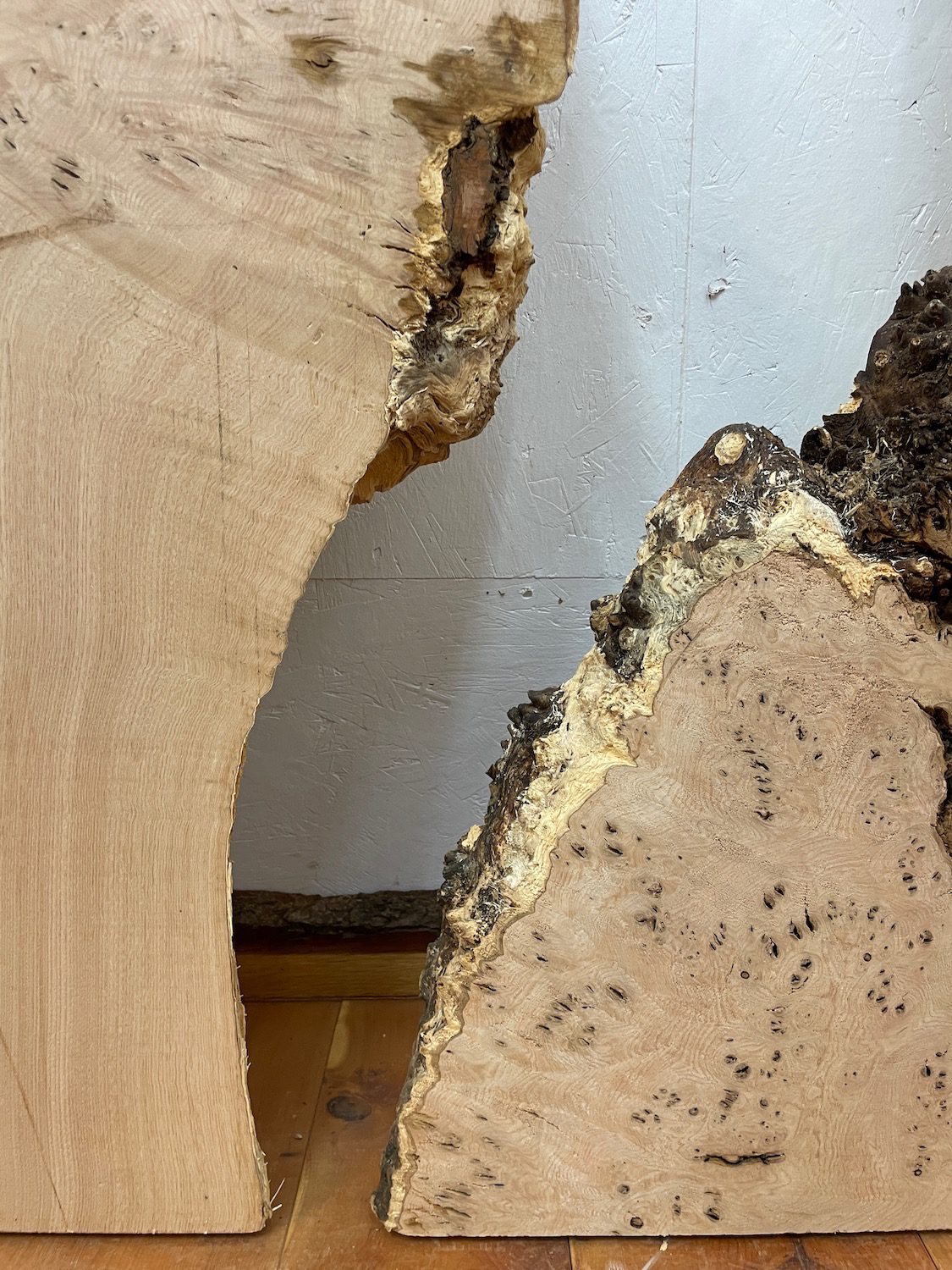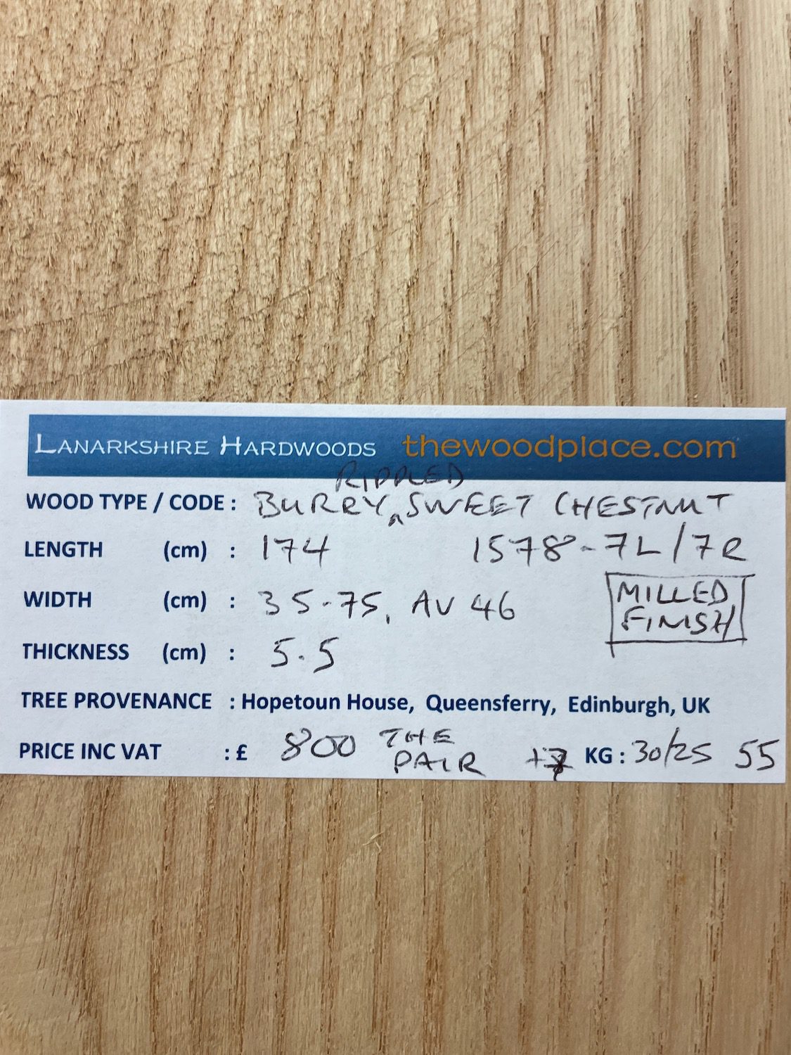 BURRY RIPPLED SWEET CHESTNUT River Table Set Single Waney Edge Slabs Milled Finish Hardwood Boards 1578-7L/7R Thickness 5.5cm Kiln Dried Seasoned Live Edge Wildwood Desktop Tabletop Worktops Dining Tabletops