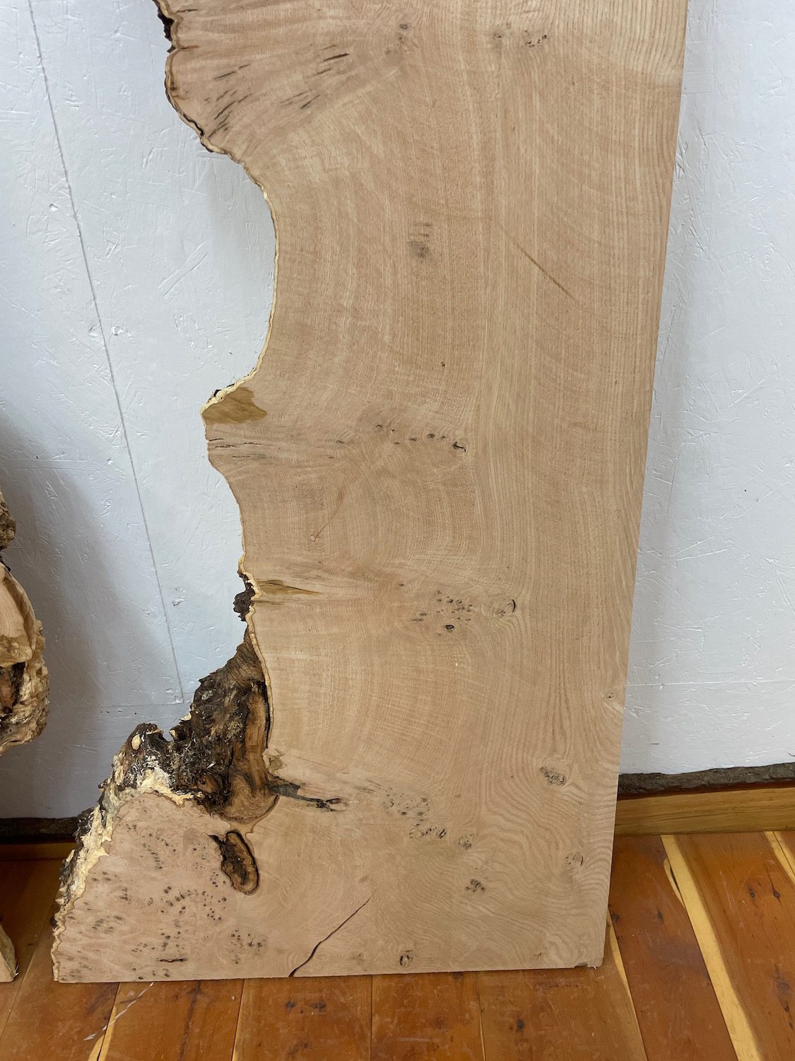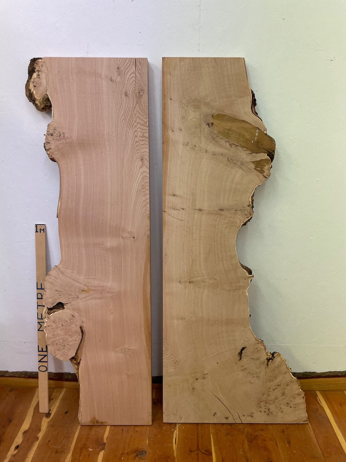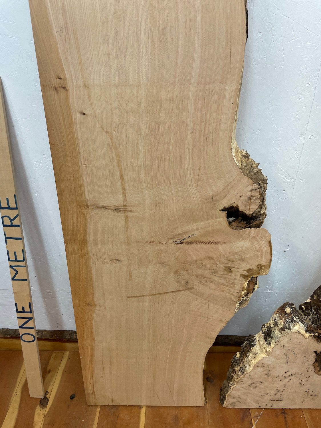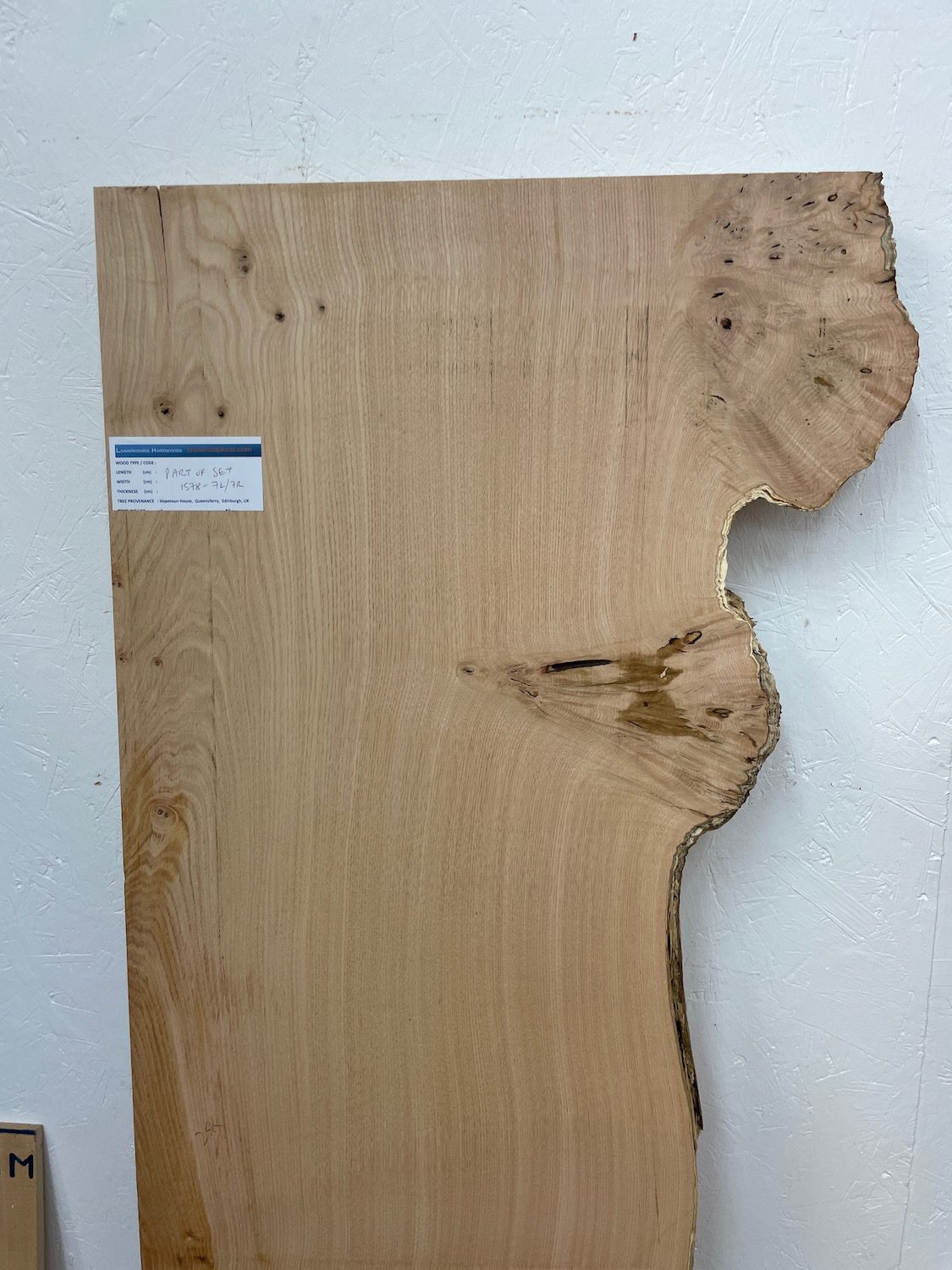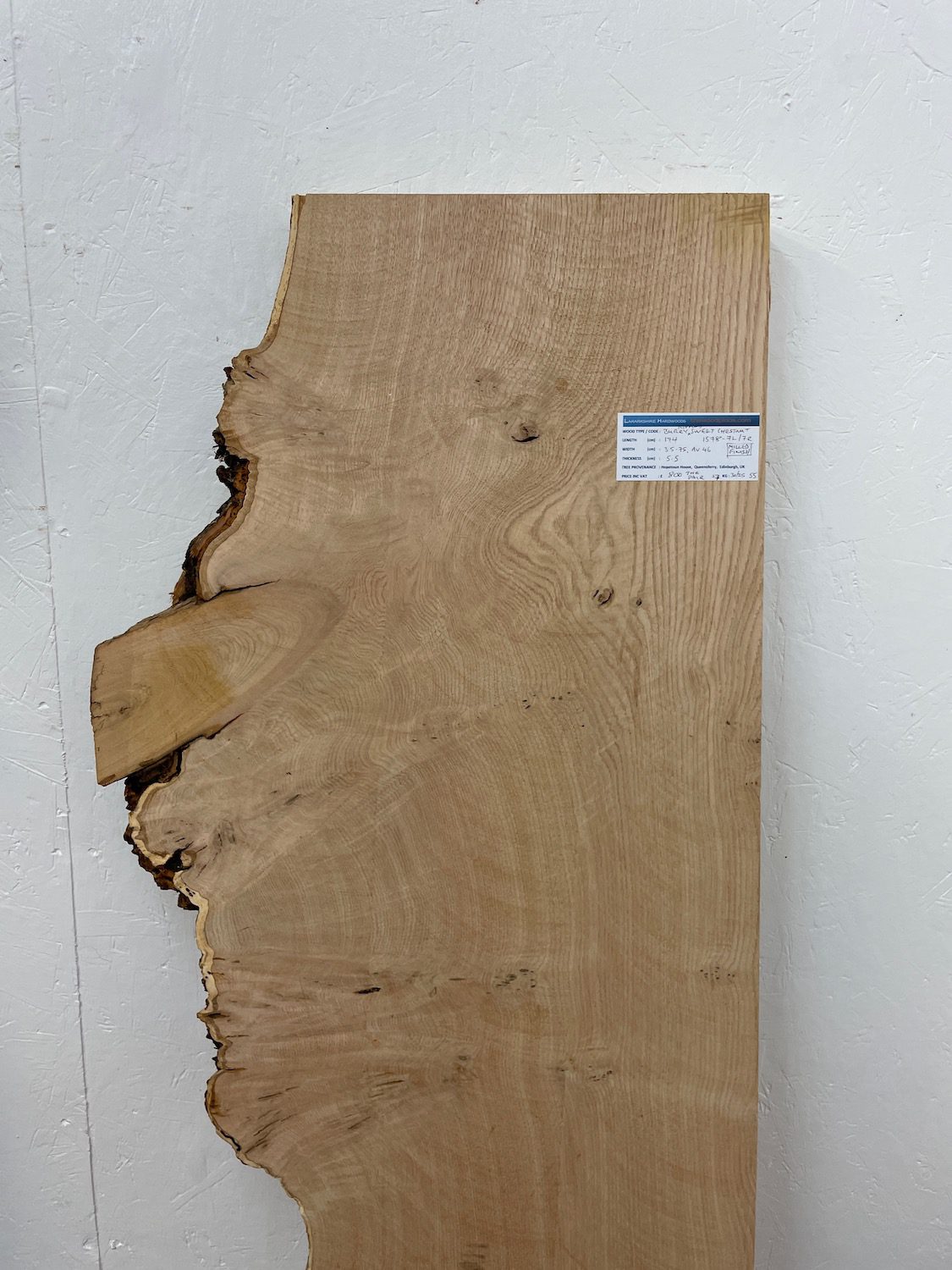 - Widths of live / waney edge boards are taken out to the extreme edge of the bark or wane portion, viewing the main picture of the board as a silhouette – think of it as 2 dimension only, ignoring the wane and whether the measurement is across the front or reverse face of the board. The measurement will thus be across whichever is the greater – usually the reverse face. If you want a separate measurement of the flat machined area only at a given point, or the dimension of a parallel cut board that can be cut out of a waney one, just ask and we will go and measure and reply quickly.