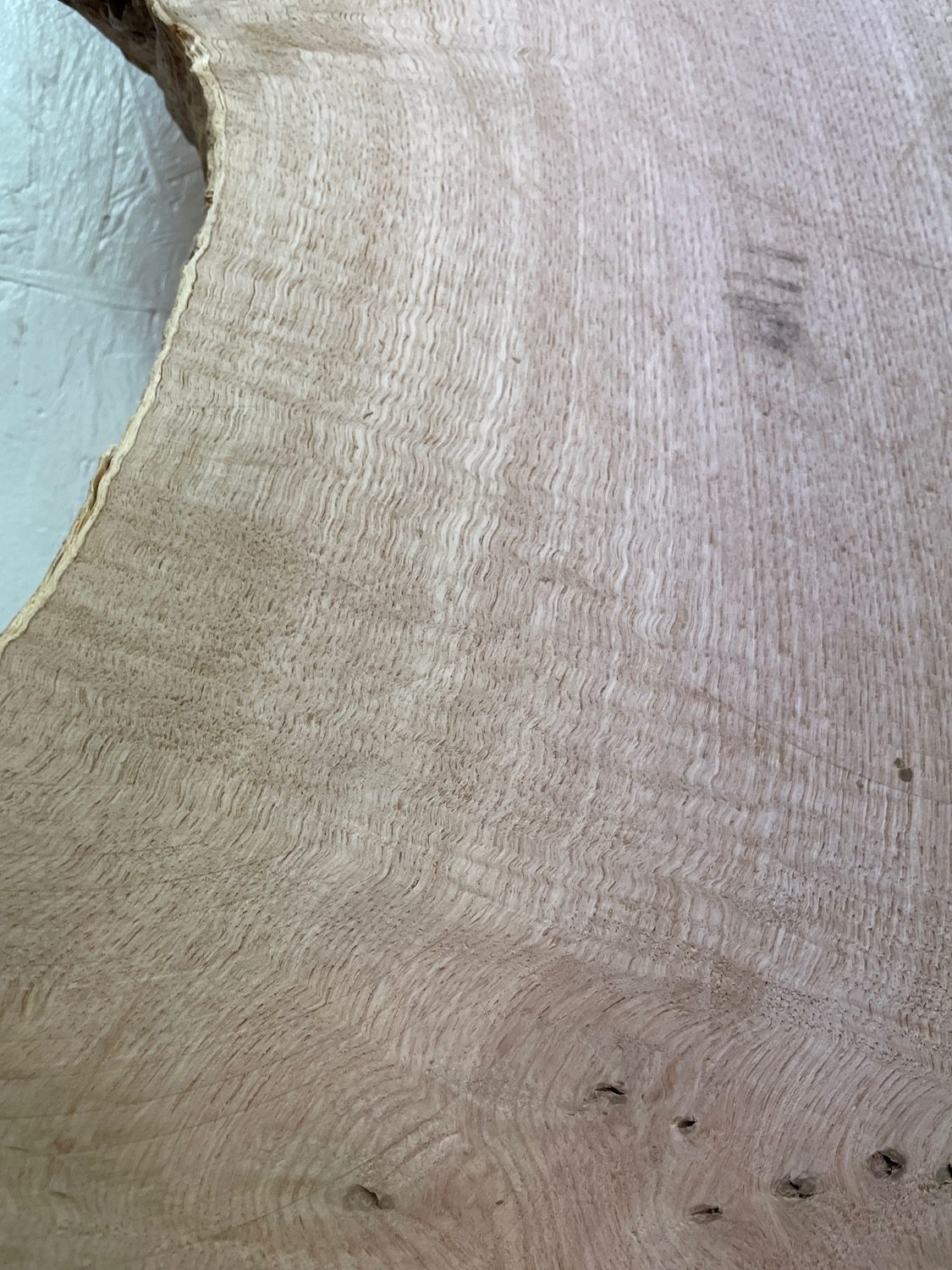 Milled Finish boards will usually be those over 60cm wide. We mill flat firstly one face of each board. Next we then flip them over and mill again, calibrating to a uniform thickness within a max range of plus/minus 5mm, but usually within the range plus/minus 2mm. You, the customer (or us, on request, if available), should further finish sand boards to achieve a perfect finish. It is necessary to remove about 0.5mm to 1.5mm of material to eliminate the milling marks in most cases. Sometimes there will be bad tearout on awkward grain or soft timbers that may go deeper and usually we will show some of that in a photo if it is applicable. We recommend sanding up to 320 grit for good furniture. You can see the milled finish in some of the close up pictures of the board – it is circular swirl marks left by the sweep of the TCT milling cutter which is about 300mm diameter.