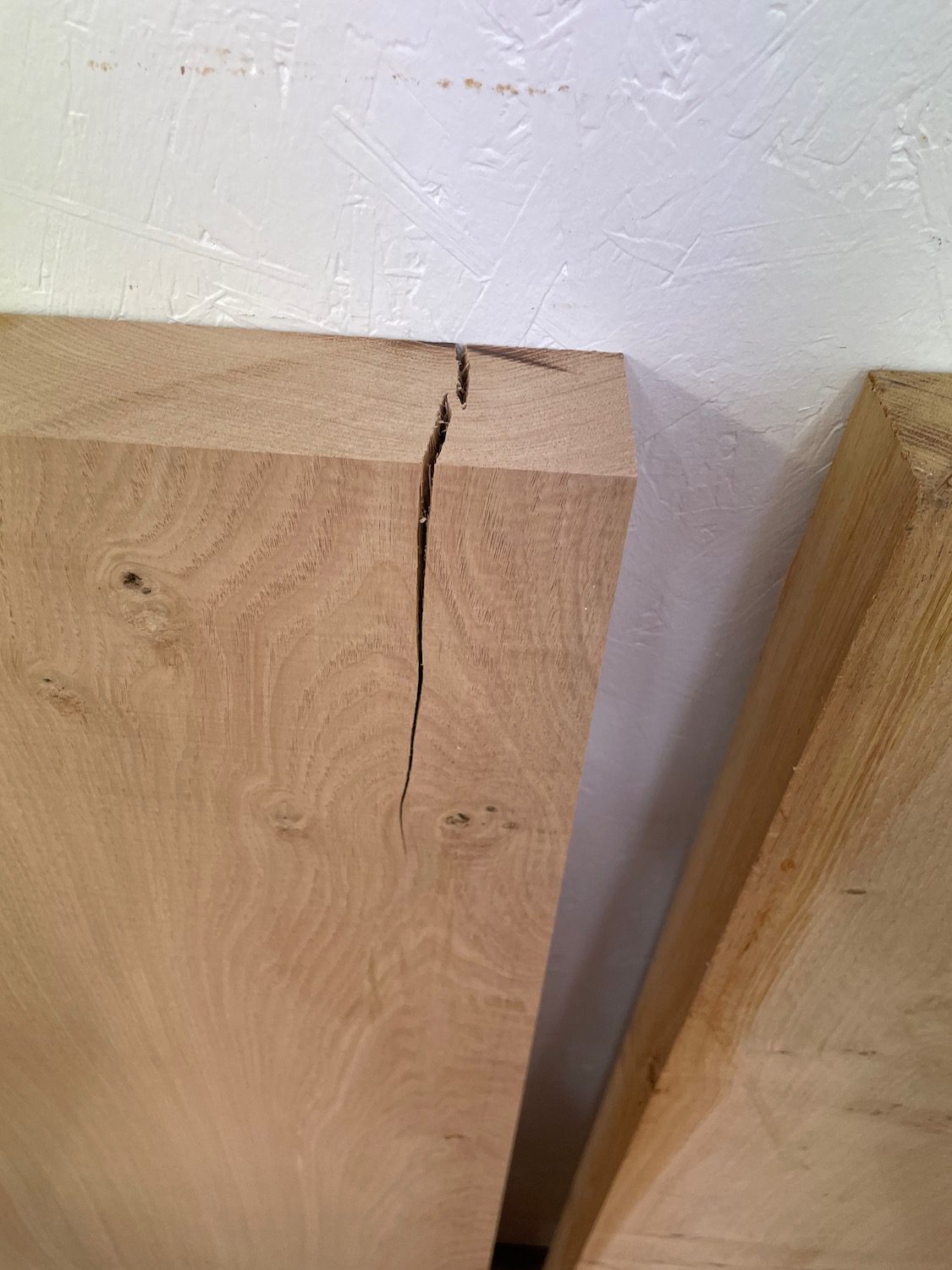 We slowly air dry the wood for about 12 to 18 months for every 2.5cm / inch of board thickness, 24 months for oak.