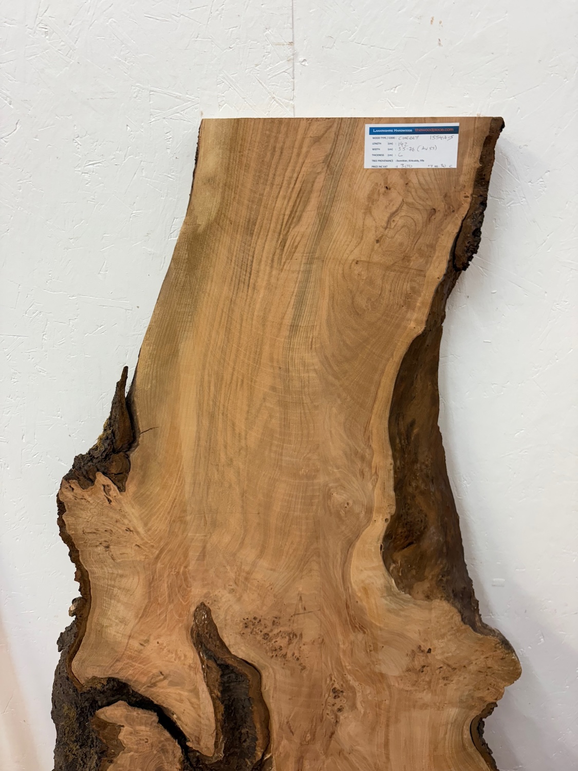 CHERRY Natural Waney Edge Slab Milled Finish Hardwood Board 1554A-5 Thickness 6cm Kiln Dried Seasoned Live Edge Offcuts Coffee Tabletops Desks Wildwood Wallart