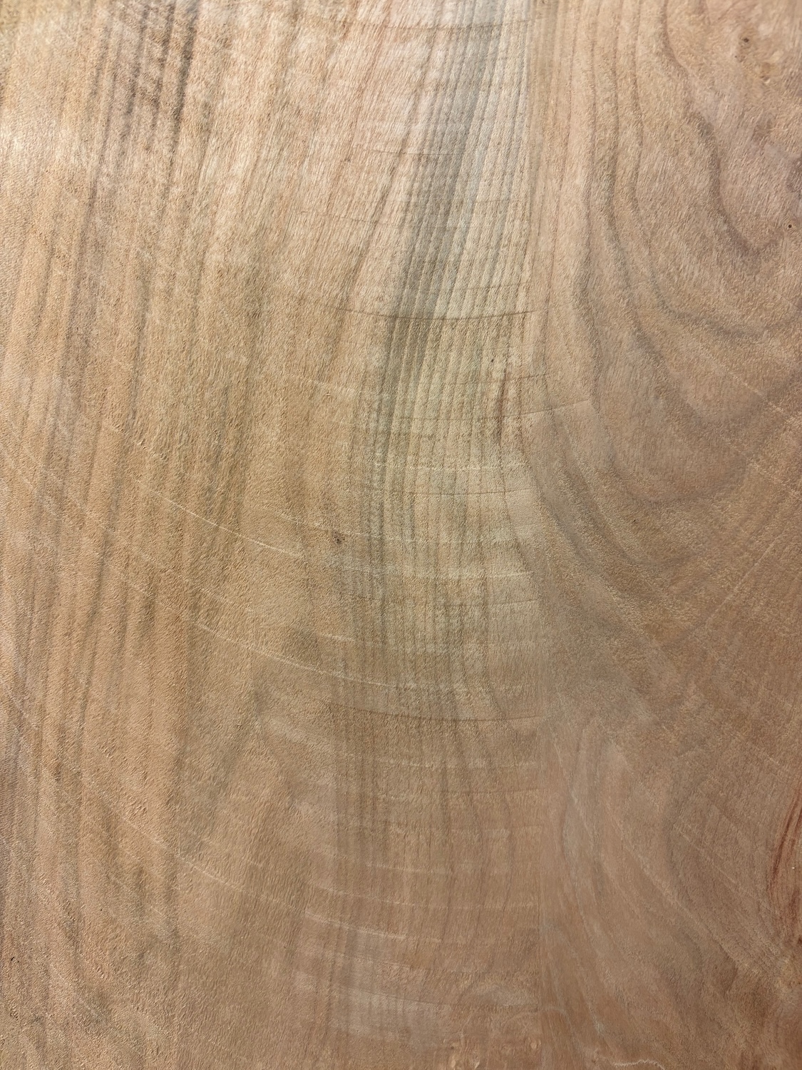Milled Finish boards will usually be those over 60cm wide. We mill flat firstly one face of each board. Next we then flip them over and mill again, calibrating to a uniform thickness within a max range of plus/minus 5mm, but usually within the range plus/minus 2mm. You, the customer (or us, on request, if available), should further finish sand boards to achieve a perfect finish. It is necessary to remove about 0.5mm to 1.5mm of material to eliminate the milling marks in most cases. Sometimes there will be bad tearout on awkward grain or soft timbers that may go deeper and usually we will show some of that in a photo if it is applicable. We recommend sanding up to 320 grit for good furniture. You can see the milled finish in some of the close up pictures of the board – it is circular swirl marks left by the sweep of the TCT milling cutter which is about 300mm diameter.