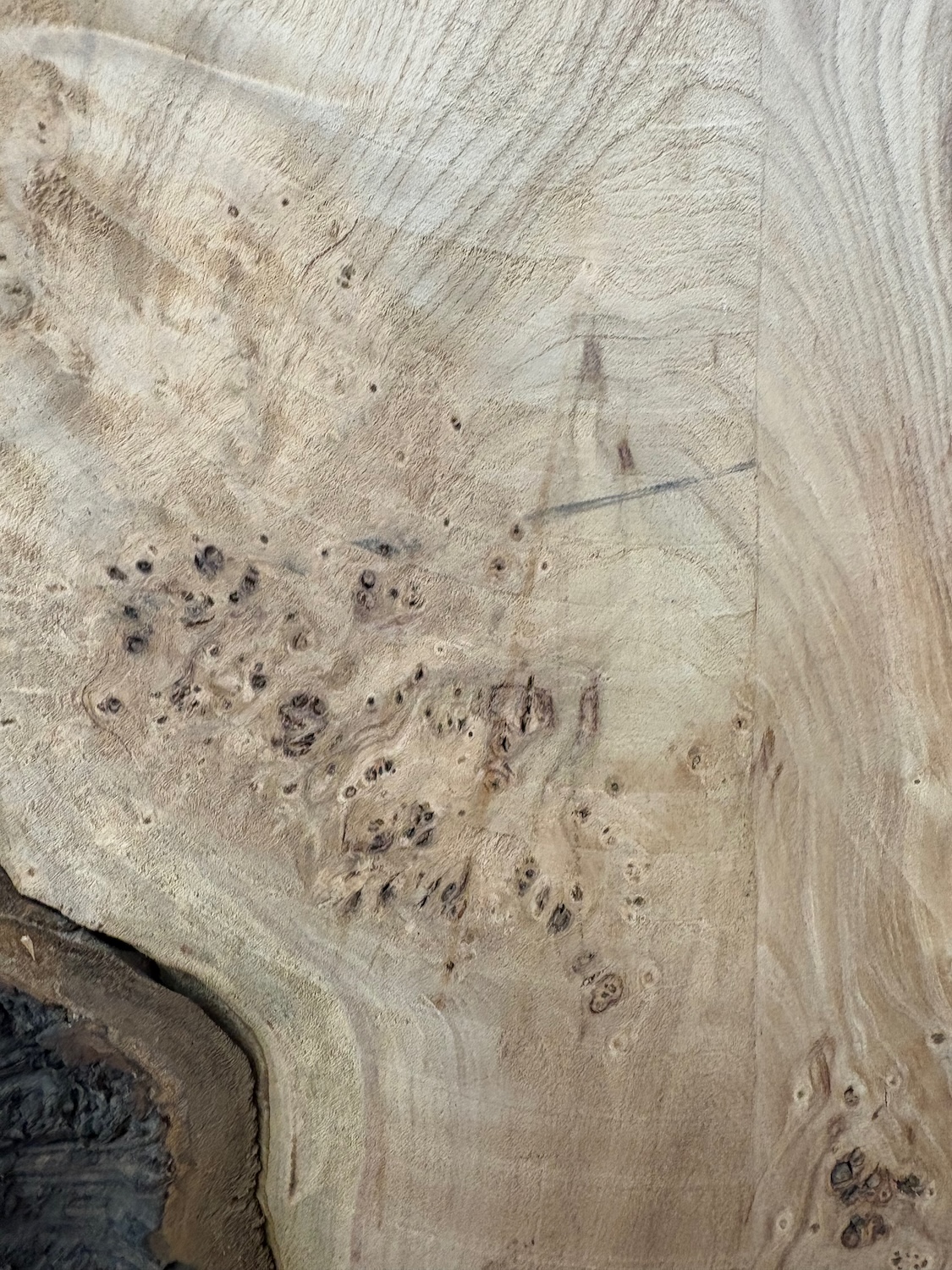 We will picture some non-planed areas in the product pictures. However, the image of one such area does not mean it is the only single area, merely that the board has one or more like this. They should be easy to see as being a different colour.