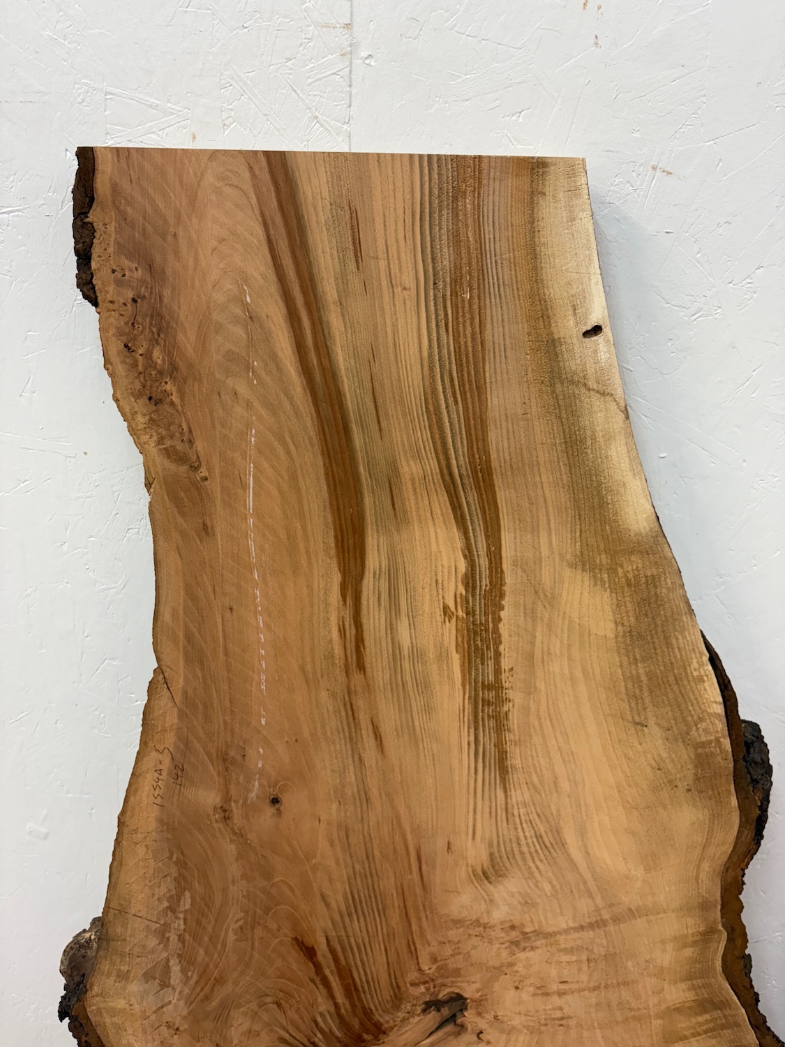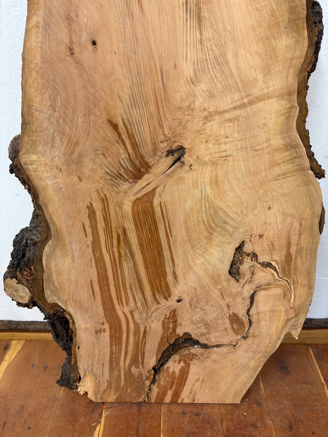 As in ‘6’ in this example, ‘1372A-6’ , board numbers are usually consecutive cuts or slices of the log /tree /butt at the sawmill. Board number 5 and 7 could be considered as bookmatched consecutive boards to number 6. However this is not always the case, as we rotate many logs through 90 or 180 or 270 degrees on the sawmill in the course of the milling. Board numbers will continue after the rotation.