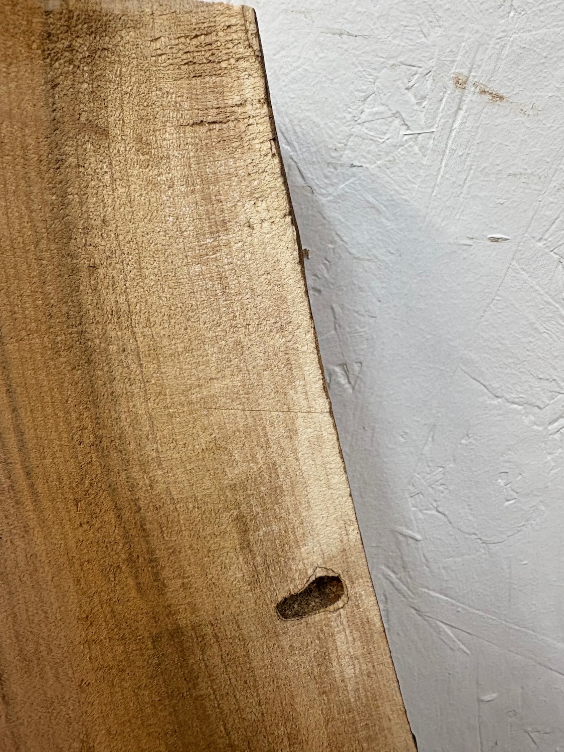 Additionally, some localised sunken patches of un-milled areas may be present, the remains of the original rough sawn finish and the distorted, seasoned surface. We may have left them if removing these would have reduced the overall board thickness too much. This could have de-stabilised or spoilt the look of the board. These will normally be on the reverse side if at all.