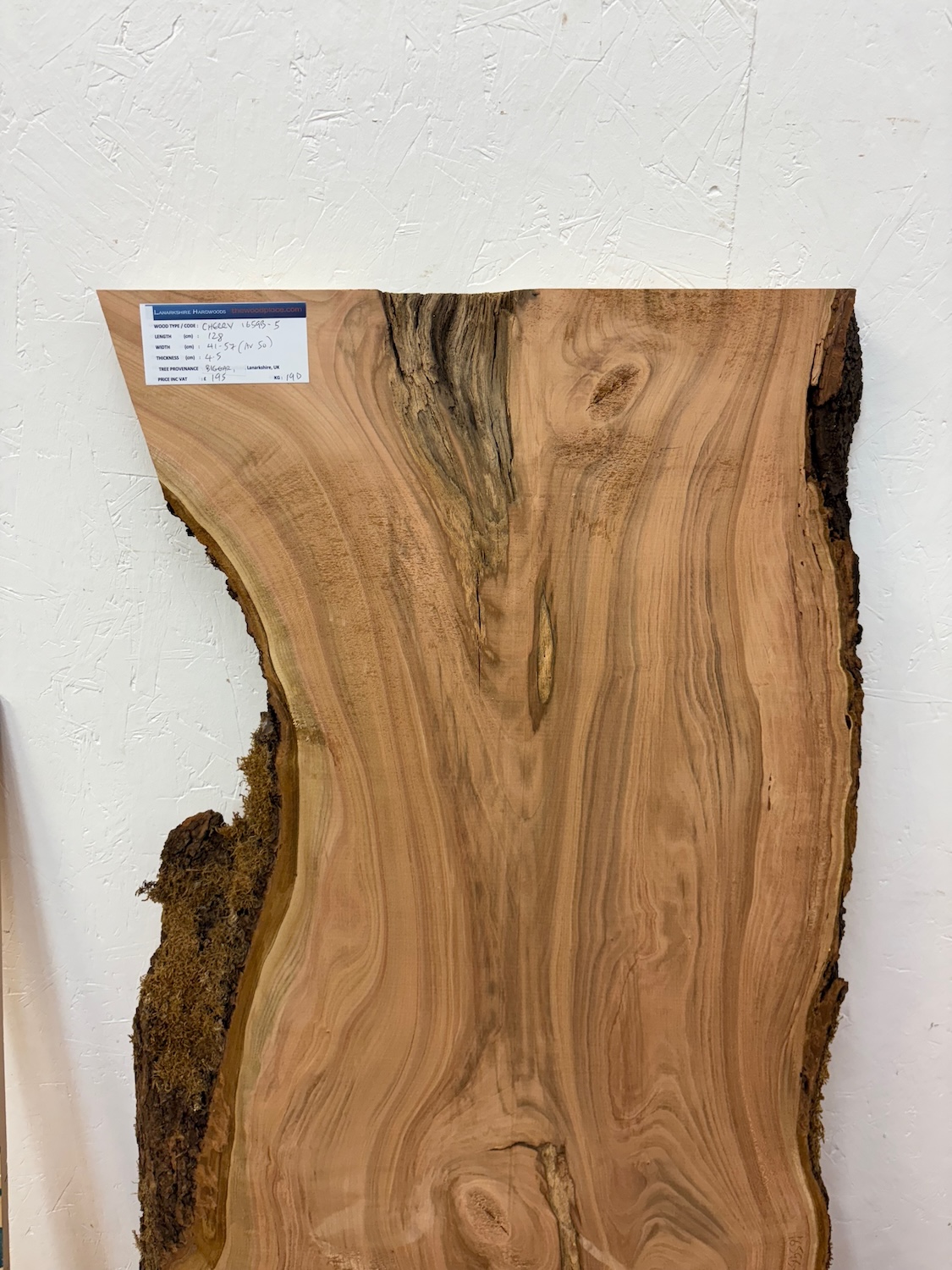 CHERRY Natural Waney Edge Slab Planed Finish Hardwood Board 1659B-5 Thickness 4.5cm Kiln Dried Seasoned Live Edge Offcuts Coffee Tabletops Desks Wildwood Wallart