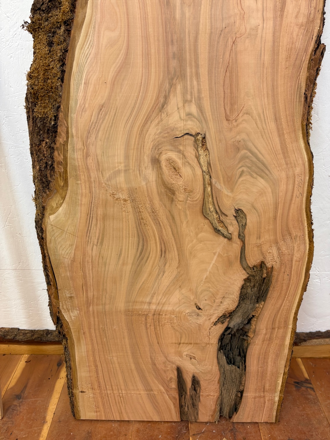 As in ‘6’ in this example, ‘1372A-6’ , board numbers are usually consecutive cuts or slices of the log /tree /butt at the sawmill. Board number 5 and 7 could be considered as bookmatched consecutive boards to number 6. However this is not always the case, as we rotate many logs through 90 or 180 or 270 degrees on the sawmill in the course of the milling. Board numbers will continue after the rotation.