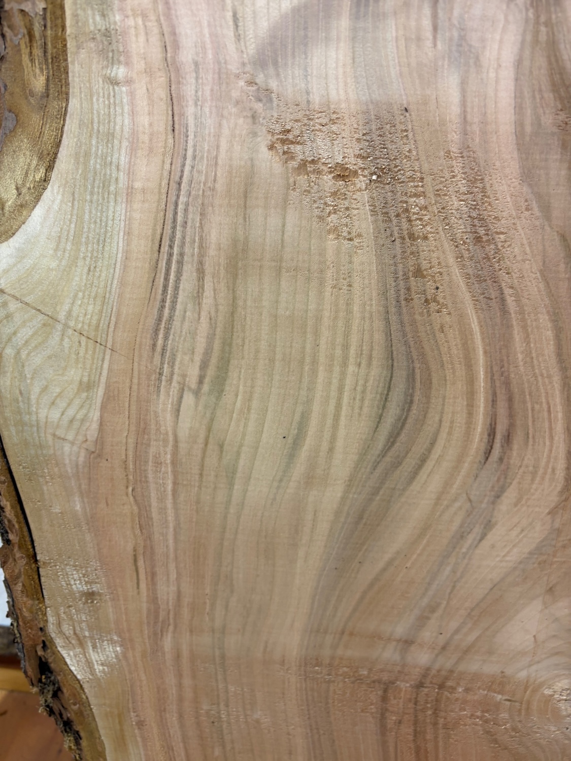 We will picture some non-planed areas in the product pictures. However, the image of one such area does not mean it is the only single area, merely that the board has one or more like this. They should be easy to see as being a different colour.