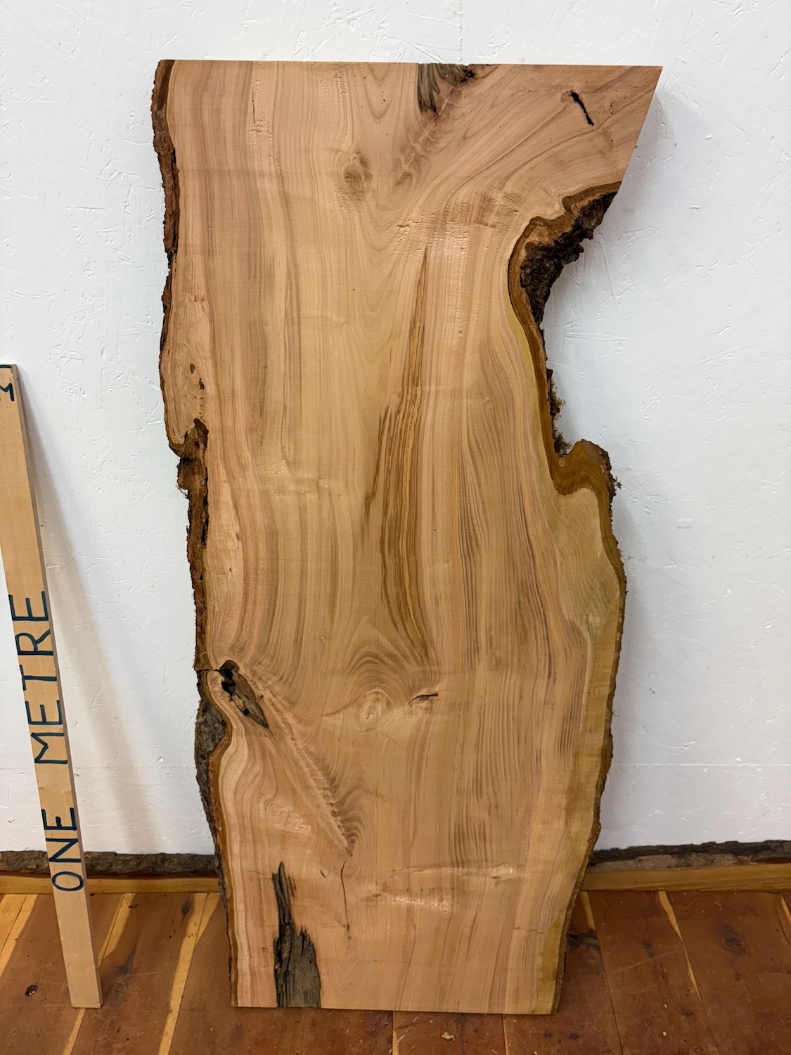 - Widths of live / waney edge boards are taken out to the extreme edge of the bark or wane portion, viewing the main picture of the board as a silhouette – think of it as 2 dimension only, ignoring the wane and whether the measurement is across the front or reverse face of the board. The measurement will thus be across whichever is the greater – usually the reverse face. If you want a separate measurement of the flat machined area only at a given point, or the dimension of a parallel cut board that can be cut out of a waney one, just ask and we will go and measure and reply quickly.