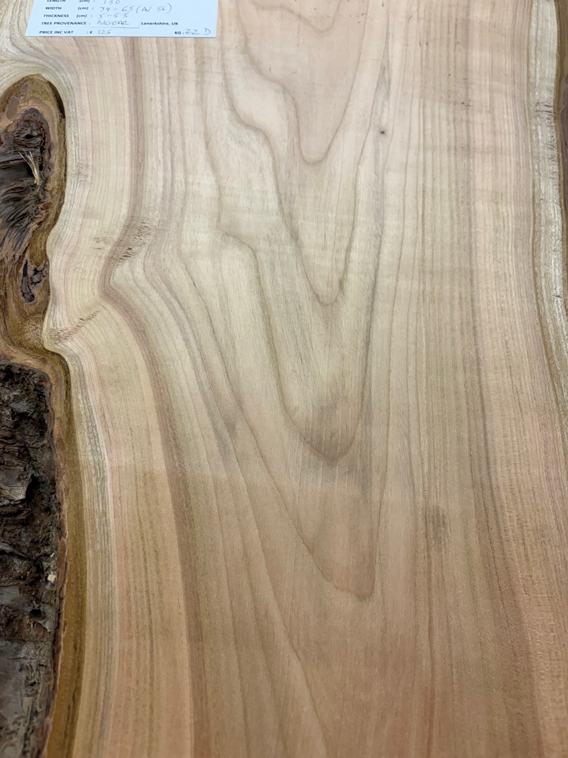 UK grown Cherry is available in relatively small sizes and rarely grows straight and true, but it has a wide variety of warm colours and textures – ripple is sometimes seen.