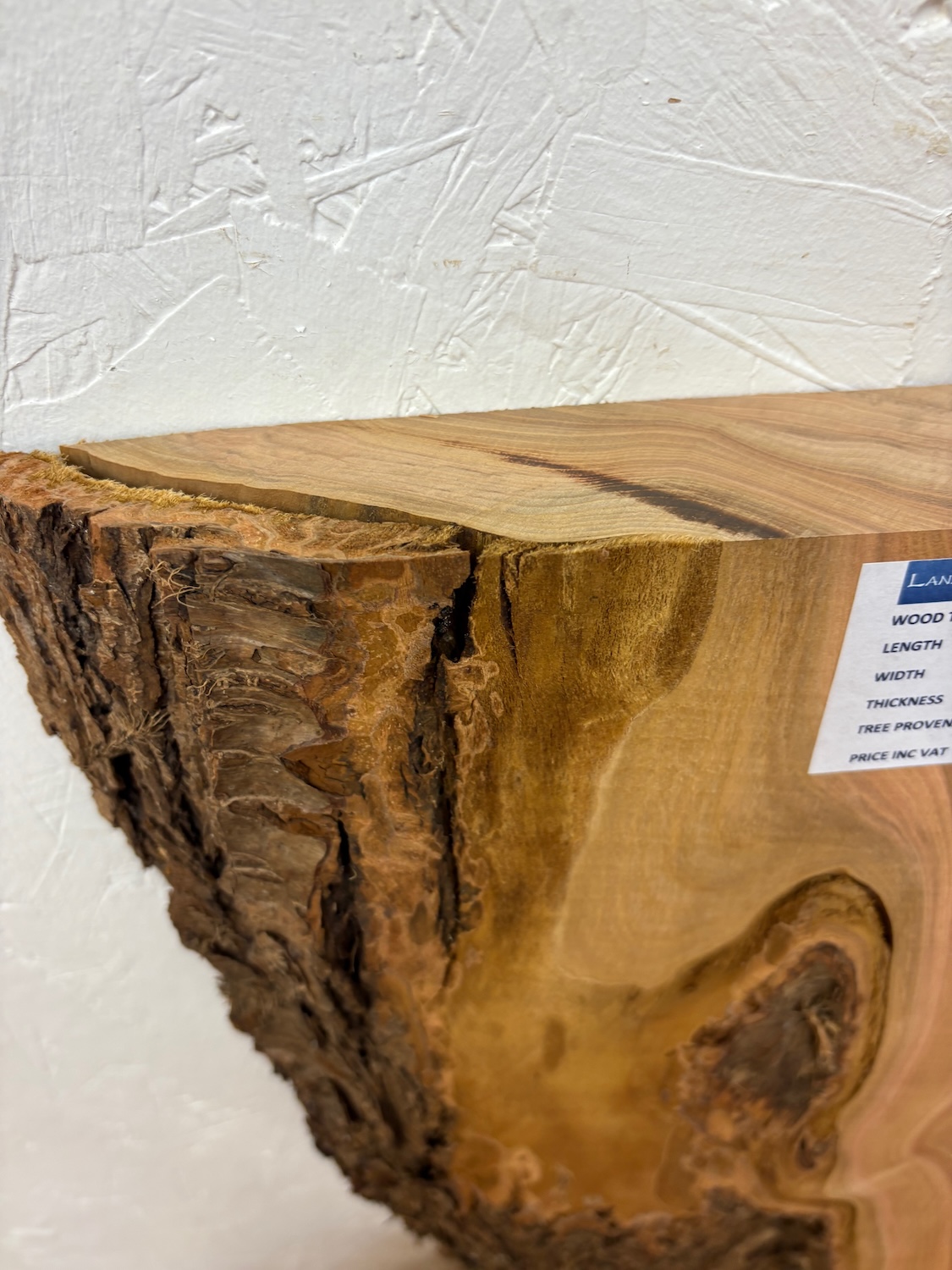 - Widths of live / waney edge boards are taken out to the extreme edge of the bark or wane portion, viewing the main picture of the board as a silhouette – think of it as 2 dimension only, ignoring the wane and whether the measurement is across the front or reverse face of the board. The measurement will thus be across whichever is the greater – usually the reverse face. If you want a separate measurement of the flat machined area only at a given point, or the dimension of a parallel cut board that can be cut out of a waney one, just ask and we will go and measure and reply quickly.
