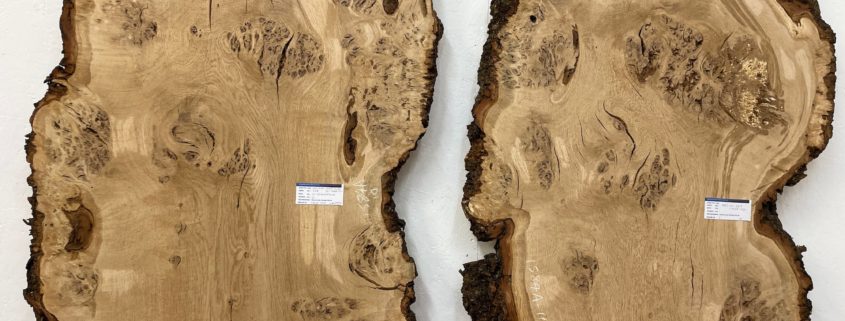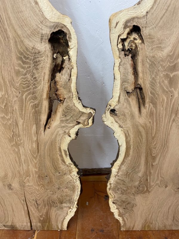 BURRY FIGURED OAK River Table Set Single Waney Edge Slabs Planed Finish Hardwood Boards 1089B-1A/1B Thickness 5cm Kiln Dried Seasoned Live Edge Epoxy Resin Projects Wildwood Desktop Tabletop Wallart Coffee TableTop