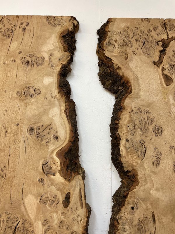 BURRY OAK River Table Set Double Waney Edge Slabs Milled Finish Hardwood Boards 1584A-10/11 Thickness 5cm Kiln Dried Seasoned Live Edge Epoxy Resin Projects Wildwood Desktops Dining Tabletops Worktops Wallart